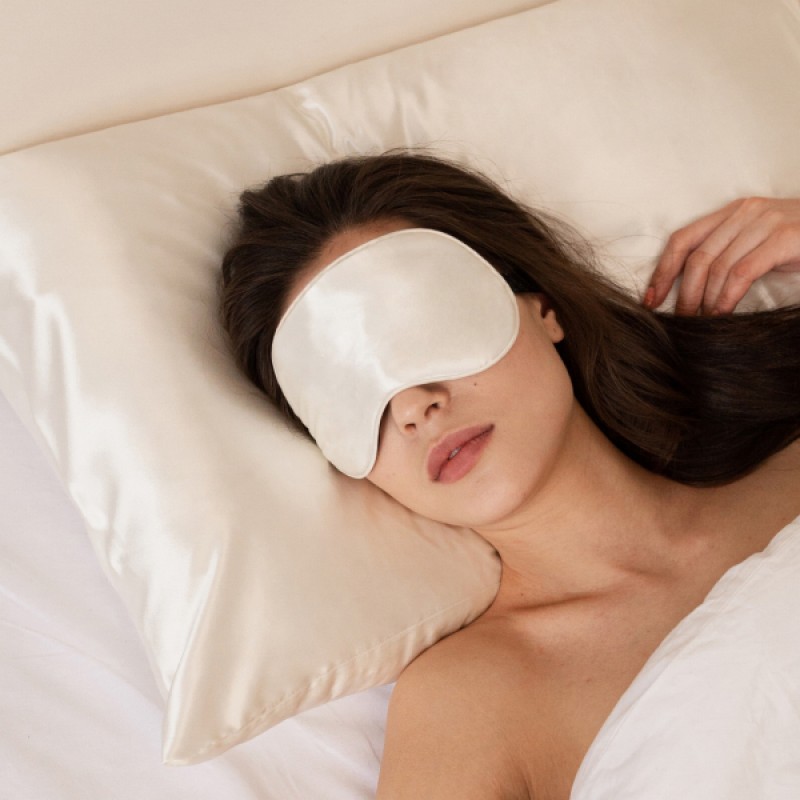 - Черный шелк с внутренней стороны маски полностью блокирует свет
